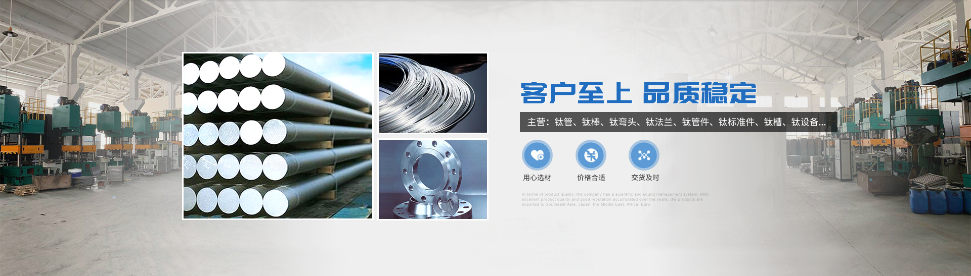 本公司的主營產(chǎn)品鈦制品有,鈦管,鈦棒,鈦彎頭,鈦法蘭,鈦管件,鈦標(biāo)準(zhǔn)件,鈦槽,鈦設(shè)備,鈦沖壓彎頭等。所生產(chǎn)各種規(guī)格的鈦制品主要運(yùn)用于化工、電鍍、石油、電子、環(huán)保、海洋等領(lǐng)域"以質(zhì)量求生存,靠服務(wù)求發(fā)展“為宗旨,客戶的滿意是我們的追求,歡迎各界用戶來函來電,傳真,洽談貿(mào)易。